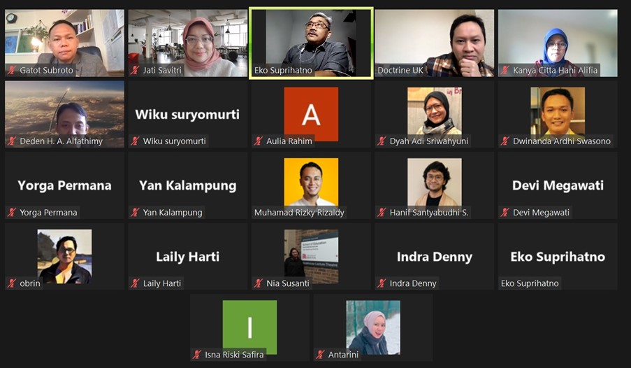 Keterangan gambar: Peserta kegiatan daring bertajuk menembus kolom opini media massa (Dokumentasi Internal, Doctrine UK).